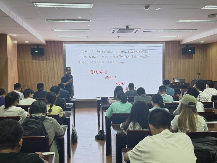 8月14日,304永利集团官网入口地质技能综合实习动员大会在仙林校区朱共山楼125会议室顺利举行。参加实习的45名本院学生及11名中国科学院南京地质古生物研究所学生、8名实习队教师、1名本科生辅导员参加动员大会。