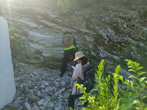 823日,同学们开始了野外填图实习的第一天,按照既定路线寻找和观察野外露头地层。从志留系的高家边组到二叠系的栖霞组,再到三叠系的青龙组,大家根据岩性和厚度变化辨别地层界线,测量产状,描述重要构造点特征。各小组分工明确,有序进行着填图工作,第一天的填图工作顺利完成!