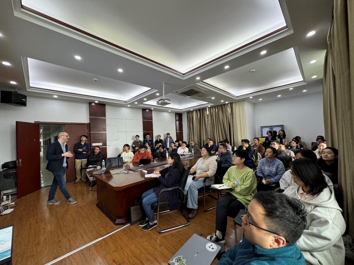 英国布里斯托大学气候科学和地质学领域的知名学者Dan Lunt教授近日来我校访问交流。10月22日上午,Lunt教授在地科院开展了关于“过去5亿年间的气候敏感性和极地放大效应的变化”的专题讲座。该讲座以重建古气候的各项数据为切入点,介绍了地球系统、气候变化背后的物理机制,各种模型对不同气候指标的模拟效果,以及在古气候重建中的具体研究案例。同时,该讲座也分享了各国科学家如何在预测未来气候变化的课题中进行国际性合作。