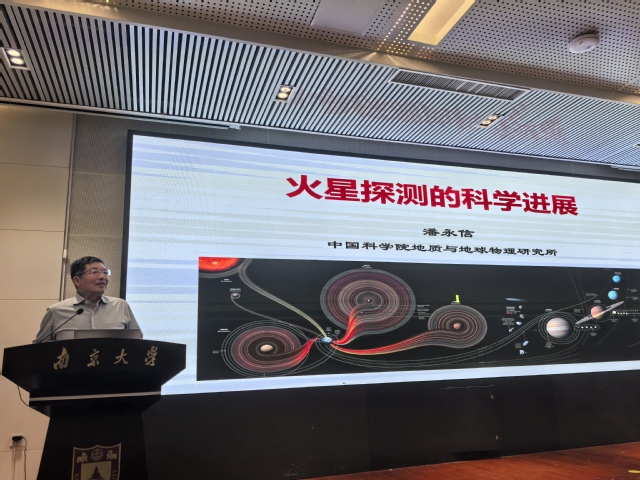 2025年9月8日,“南雍地学大讲堂”第四期邀请到中国科学院地质与地球物理研究所潘永信院士,以“火星探测的科学进展”为主题,为200多名师生带来了一场兼具学术深度与思想启发的知识盛宴。报告现场座无虚席,师生们专注聆听、积极思考,浓厚的学术氛围贯穿始终。报告会由陈天宇院长主持。