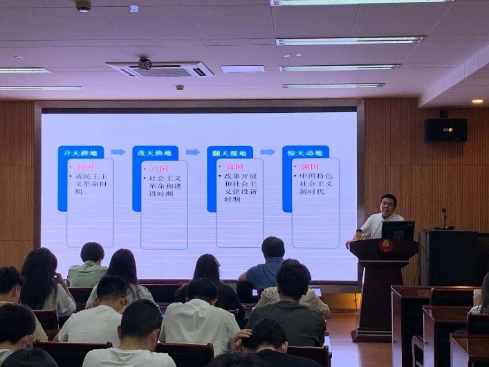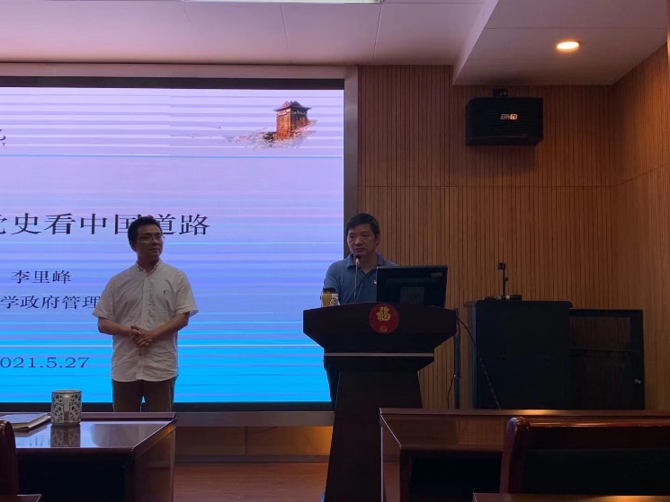 为更好的学习贯彻习近平新时代中国特色社会主义思想,加强党史学习教育,做到学史明理、学史增信、学史崇德、学史力行”、学党史、悟思想、办实事、开新局的要求,5月27日下午,304永利集团官网入口党委邀请了304永利集团官网入口理论讲师团专家、政府管理学院李里峰教授作题为“从百年党史看中国道路”的专题报告。报告会由党委书记王唯主持,院党委理论中心组成员、师生党员及发展对象、入党积极分子参加学习。