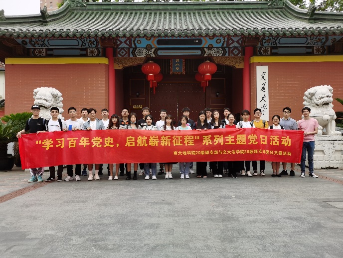 支部交流后,双方各自向对方介绍了自己学校学科的基本情况与特色,并在展示中进行讨论。地科院丰志杰与朱原峰同志分享了学院学科概况与地质学科独特的野外实习经历,介绍了野外实习的相关内容。法学院刘沁寒、黄昊同志分享了法学学科的特色,王帷韬同志介绍了法学院团支部建设的心得体会。双方在展示与讨论交流中增进了不同学科之间的了解,学习了对方支部建设中的优秀经验,为今后的支部建设提供了宝贵的参考意见,本次交流活动取得了圆满成功,会后双方在凯原法学院楼下及交大门前合影留念。