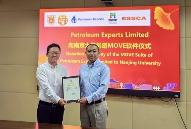 据悉,PE Limited公司总部位于英国爱丁堡,自1990年成立以来,致力于油气田生产系统一体化模拟平台开发。他们开发的MOVE构造地质综合解释软件是国际领先的构造模拟与分析工具,已应用于全球60多个国家。此次捐赠的MOVE、2D Kinematic Modelling、3D Kinematic Modelling、Geomechanical Modelling、Fracture Modelling、Fault Response Modelling、Fault Analysis、Stress Analysis、MOVE Link for Petrel、MOVE Link for OpenWorks,以及MOVE Link for GST系列软件使用许可(10套),市场售价2,506,898.78英镑(逾2325万人民币)。