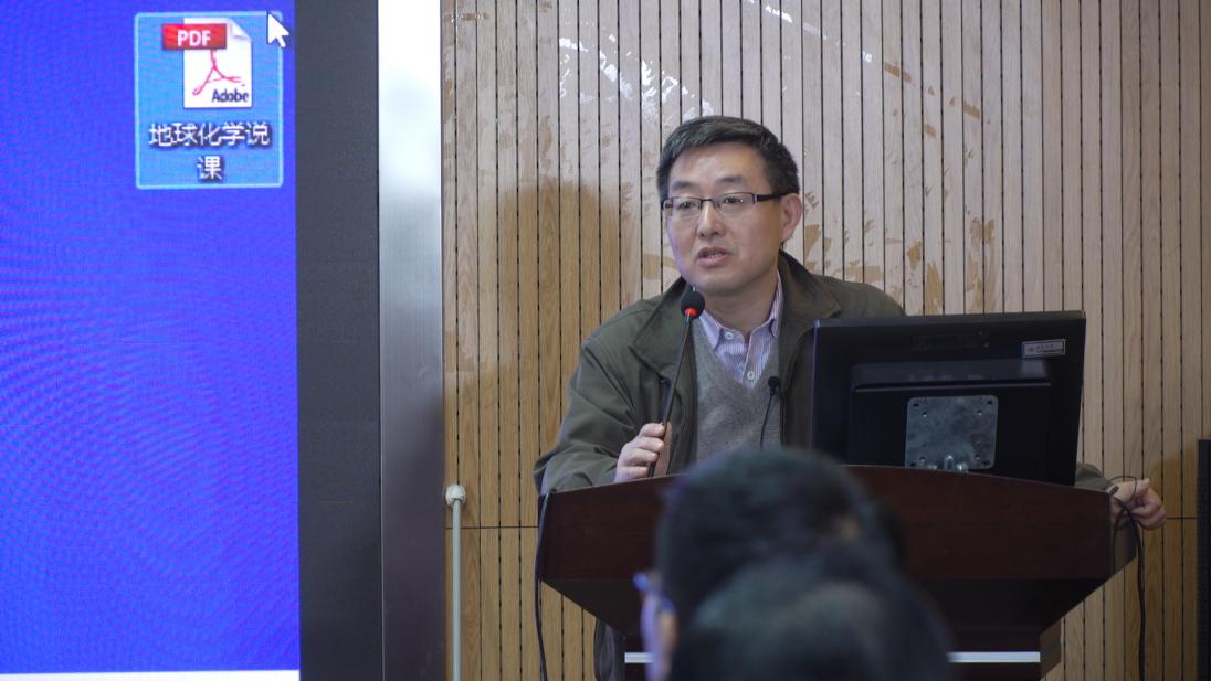 “说课大赛”正式开始。首先,林春明老师进行了《沉积岩岩石学》的课程介绍。林老师着重展示了他极富特色的“三段式”教学方法和启发式的教学理念,对沉积岩这门传统的专业课做出了许多创新。