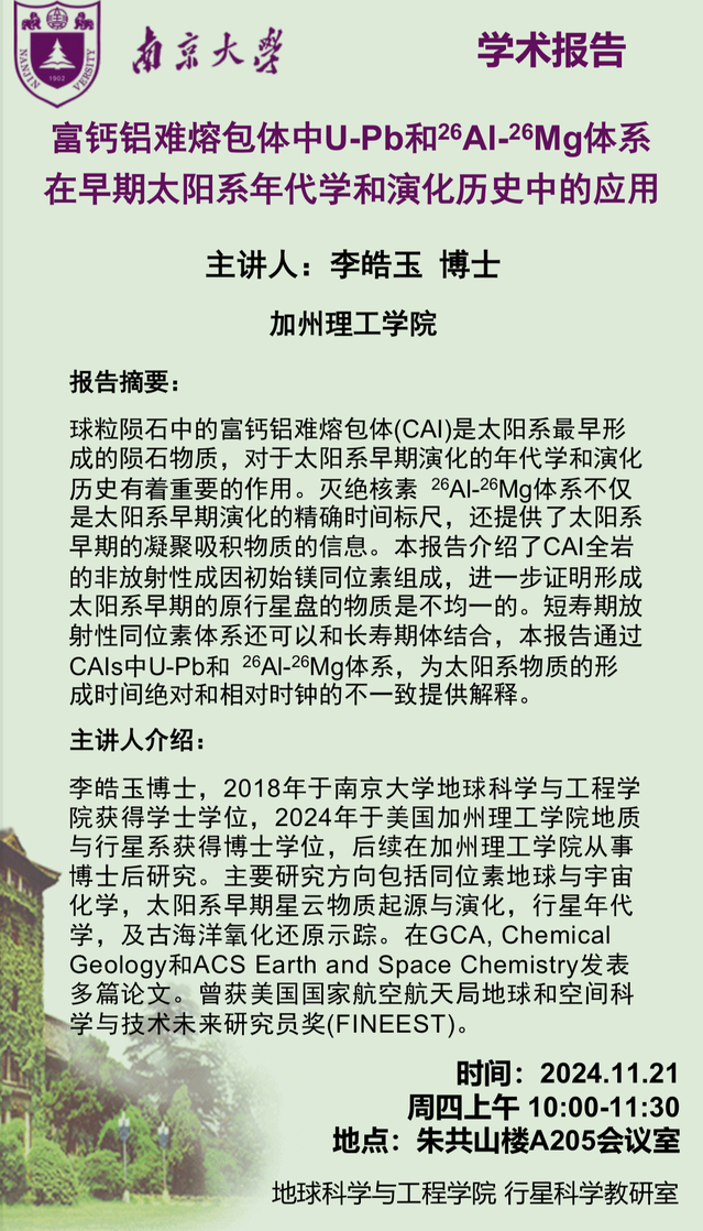 富钙铝难熔包体中U-Pb和26AI-26Mg体系在早期太阳系年代学和演化历史中的应用