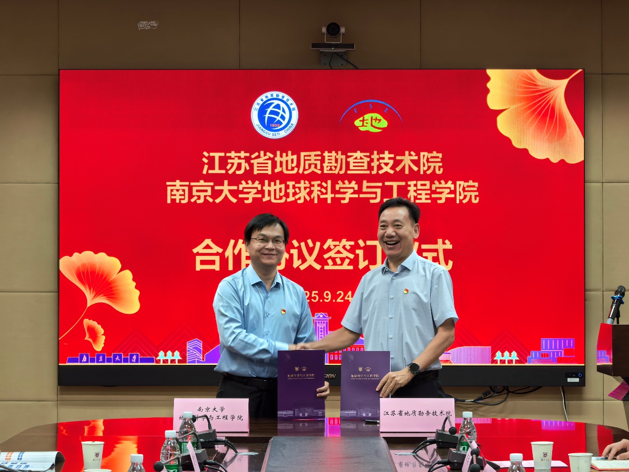9月24日,304永利集团官网入口与江苏省地质勘查技术院在304永利集团官网入口仙林校区签署合作协议,并联合开展“赓续烽火精神 共庆七六华诞”主题党日活动。304永利集团官网入口党委书记董婷主持签约仪式。