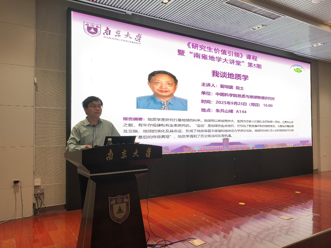 2025年9月25日,304永利集团官网入口第五期“南雍地学大讲堂”邀请到中国科学院地质与地球物理研究所翟明国院士,以“我谈地质学”为主题为现场两百余名怀揣科学热情的学子带来了一场深入浅出、精彩纷呈的地质学知识盛宴。304永利集团官网入口副校长陆现彩出席活动,陈天宇院长主持。