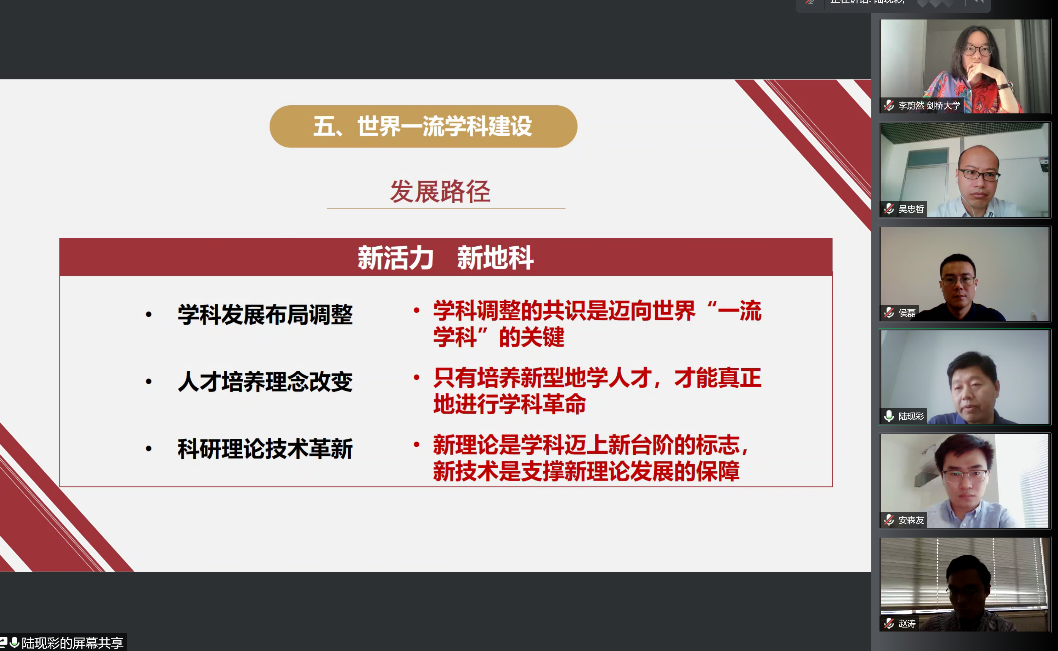 开幕式上,王唯书记向参加本次分论坛的青年学者表示热烈欢迎。他指出分论坛旨在为海内外地球科学领域的青年英才搭建一个相互交流的舞台,同时也为大家提供深入了解地科院的机会,希望青年学者们能够通过此机会认识地科院,爱上地科院,选择地科院作为筑梦圆梦的平台。接着,陆现彩主任围绕学院历史沿革、师资队伍、研究平台、学科建设等方面,结合学校的十四五规划,向青年学者们介绍了学院的总体情况以及学院建设发展的理念、发展目标、发展路径。开幕式结束后,11名青年学者围绕地球科学前沿、热点问题在两个分会场分别做了学术前沿报告,并与参会师生进行了交流与讨论。