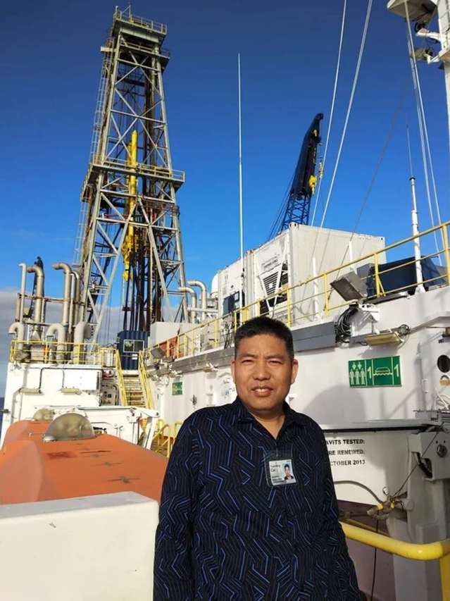 304永利集团官网入口蔡元峰教授在“决心号”钻探船上