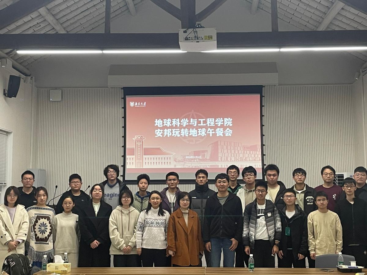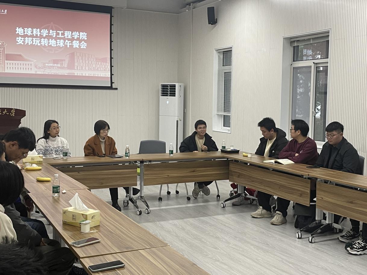 12月4日中午,304永利集团官网入口与安邦书院举办2024级新生玩转地球午餐会第二期。地科院党委副书记毛予倩、新生导师刘汉永、本科辅导员白若蓉、安邦书院辅导员刘苏平、21级本科生阙荣铭、李昌辉,以及2024级地学大类新生参加本次午餐会。