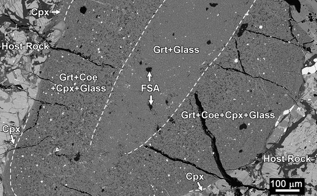 天体撞击是太阳系中最重要最广泛的过程之一,弄清不同天体撞击强度与时空分布可以为构建太阳系天体的动力学演化理论提供重要制约参数。陨石中的高压矿物几乎都是天体撞击的产物,它们主要发现于普通球粒陨石、火星陨石和月球陨石。这与这些陨石母体表面存在大量撞击坑一致。令人费解的是,在近1700块灶神星陨石中却极少有高压矿物报道,只有日本学者于2014年在一块灶神星陨石发现了二氧化硅的高压相(柯石英和斯石英)。这样的发现频率与灶神星表面存在大大小小的撞击坑极为不符。曾有学者用小行星带的平均撞击速度较低来解释这个矛盾,同时也有学者认为灶神星陨石主要来自灶神星南极的超大撞击盆地。