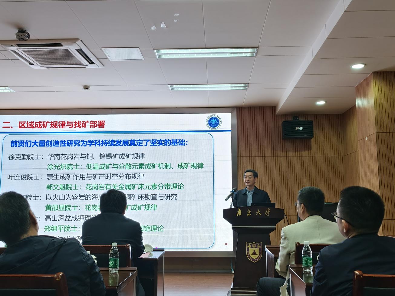 2024年11月11日,304永利集团官网入口“仙林论坛”第十九期学术报告会在304永利集团官网入口举行。本次学术报告邀请了中国工程院院士、自然资源部成矿作用与资源评价重点实验室主任、中国矿物岩石地球化学学会副理事长、中国地质学会矿床专业委员会主任和中国稀土学会矿产勘查专业委员会主任毛景文研究员就“我国矿床学研究进展及发展方向”为主题进行了精彩的报告。会议由304永利集团官网入口副校长陆现彩致辞并主持。众多校内外师生学者参加学术报告,现场座无虚席、气氛热烈。