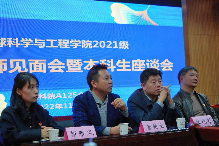 为帮助地科院2021级本科生增进对专业的了解,从而在今后的学业选择和专业选择更加的笃定和自信。11月23日中午,304永利集团官网入口2021级学业导师见面会暨本科生座谈会在朱共山楼125室举行。地科院党委书记王唯,院长陆现彩,党委副书记毛予倩,副院长唐朝生,资深辅导员刘宪华,本科生教学秘书茆雅凤,以及来自不同专业的学业导师出席座谈会。2021级本科生辅导员陈昕主持本次座谈会。