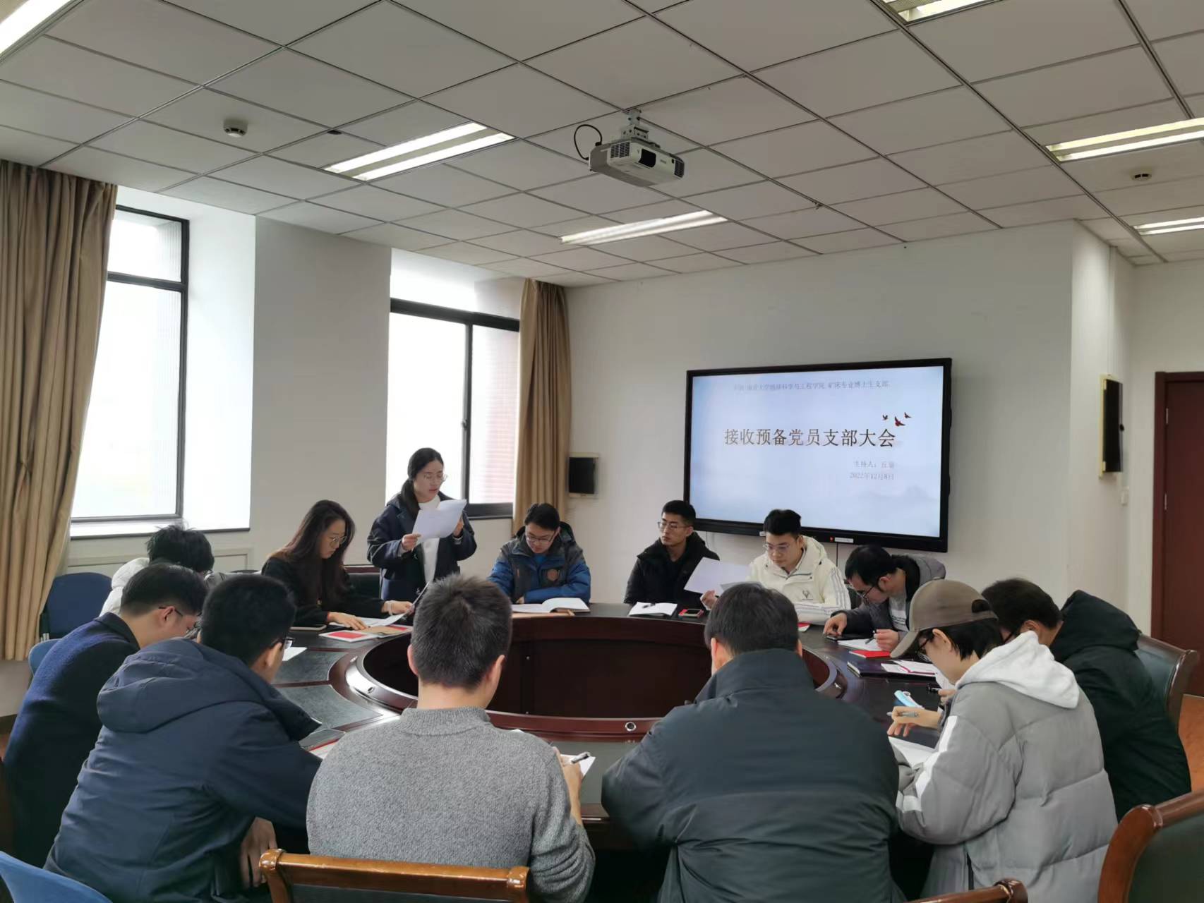 2022年12月8日中午,304永利集团官网入口矿床专业博士生党支部在朱共山楼A351会议室举行党员大会。参加此次大会的有联系支部的院党委副书记毛予倩、支部全体党员以及发展对象,会议由党支部书记丘靥主持。本次党员大会一共有两项议程:发展对象转预备党员会议、关于加快建设“第一个南大”的大讨论。