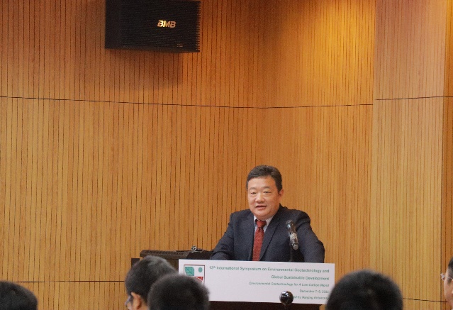 12月8日上午,在唐朝生教授的主持下,大会开幕式在304永利集团官网入口朱共山楼隆重举行,并为前不久逝世的国际环境岩土工程领域先驱之一、ISEG创始人Hsai-Yang Fang(方晓阳)先生默哀。大会学术委员会主席陈云敏院士致辞,他指出环境岩土工程在当前人类应对全球可持续发展中扮演重要的角色,本次会议为环境岩土工程领域的专家学者提供了优质的交流平台,对促进环境岩土工程的发展具有重要积极作用。大会组织委员会主席施斌教授致欢迎辞,他简要介绍了ISEG的历史和发展以及本次会议的筹备情况,并特别感谢了众多青年学者对本次会议的积极参与和支持,体现出环境岩土工程领域在未来有着巨大的发展潜力。