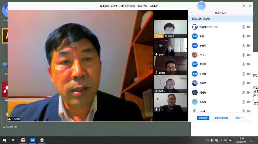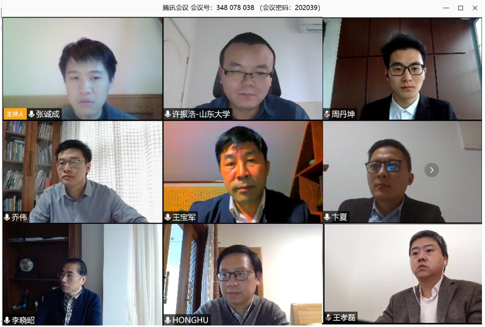 作为地科院历史上第一个线上进行的博士论文答辩会,从学院、答辩委员会,到导师和学生,都进行了认真准备,对答辩的流程和学位论文质量提出了较高的要求。答辩前一天,答辩委员会专门进行了网上答辩的流程试验。正式答辩从3月9日下午14:30开始,一直持续到18:00。答辩委员会主席304永利集团官网入口王宝军教授主持答辩会,答辩委员包括304永利集团官网入口朱鸿鹄教授、山东大学许振浩教授、中国矿业大学乔伟教授、河海大学卞夏教授,答辩秘书为张诚成博士,答辩监督教师为张巍副教授。此次答辩会共有身处全国各地的66名师生共同参加,永利集团官网负责研究生工作的王孝磊副院长也全程在线参加了此次答辩。