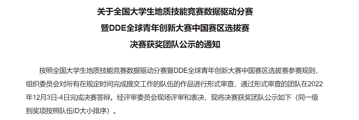 永利集团官网生物演化与环境科教融合中心2023级硕士预备生(现为中国地质大学(武汉)本科生)储添翼、2020级直博生文蝶、2022级直博生沙荣花、2022级硕士生沈含笑以及中国地质大学(武汉)2019级本科生乔晓晓同学组成的The One团队,以“One Analysis数据分析功能项目”获得全国大学生地质技能竞赛数据驱动分赛暨DDE全球青年创新大赛中国赛区选拔赛(GSC-DD & DDE Cup China)创意赛道唯一的一等奖。