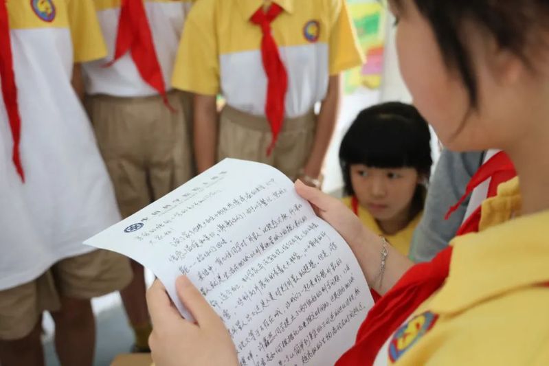 沈树忠爷爷在回信中解答了很多同学都感兴趣的问题——外星人是否真实存在?信中说:“没有发现不等于不存在哦,让我们一起来畅想外星人的模样!”幽默的语言给了队员们无限的遐想。大队长许鑫蕊欣喜的在回信中看到了自己的名字,沈树忠爷爷特别解答了她提出的两个科学问题。在与队员们分享信中内容的时候,她显得分外自豪。