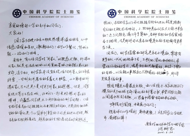 一封特别的来信,打破了塘甸小学的宁静。这一天,塘甸小学的队员们收到了来自院士校友——沈树忠爷爷的回信。