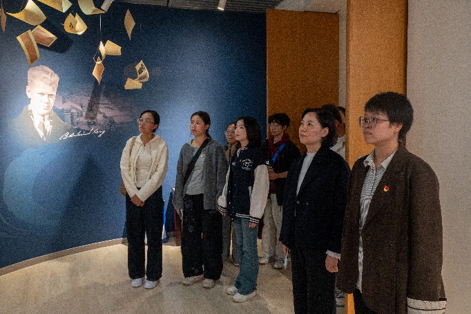会后,姚静副书记带领参会师生走进304永利集团官网入口校史馆,大家一同参观了“中国共产党抗战教材专题展”、“我的朋友:约翰·拉贝”及“我的邻居:辛德贝格”等专题展览。通过回顾党的抗战教育历程与国际友人的正义援手,师生们从历史维度深切感受到中国共产党在民族危难中的中流砥柱作用与使命担当。在回望南大百廿办学历程与辉煌成就的过程中,大家进一步感悟到“诚朴雄伟、励学敦行”校训精神中所蕴含的红色基因与为国育才的初心。这场跨越历史的对话,不仅深化了来访师生对南大文化底蕴与地学传承的理解,更是一堂生动的党性教育课,增强了理想信念,激发了赓续奋斗、服务国家的责任与情怀。