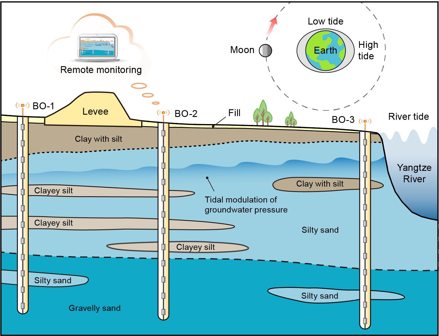 上述研究成果以“Soil stratum tides”为题近期发表于国际地学综合类顶级刊物Geophysical Research Letters,施斌、张诚成和A. J. F. Hoitink为共同通讯作者。该研究得到了国家自然科学基金重点项目、青年科学基金项目及304永利集团官网入口毓秀青年学者计划等的资助。