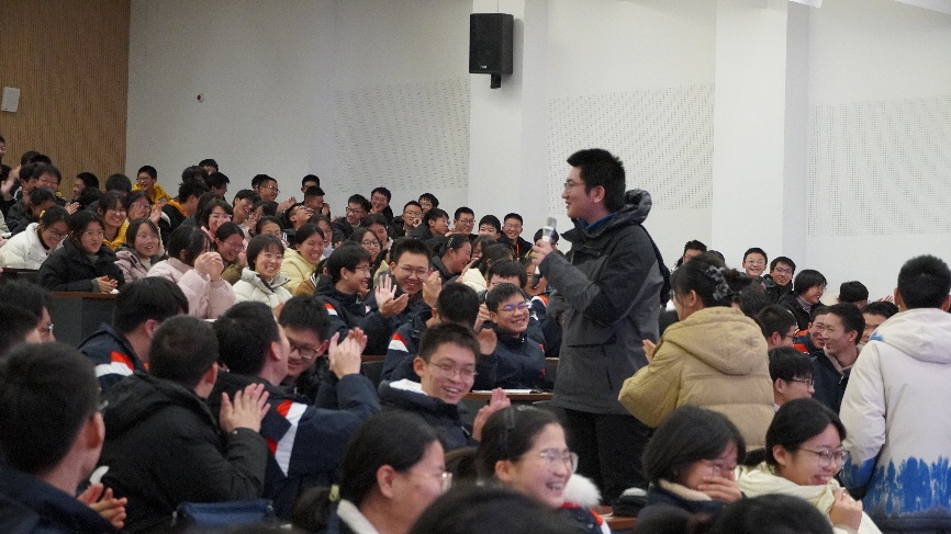 在随后的讨论环节中,同学们纷纷举手提问,积极互动交流。吴重佑学长幽默诙谐的回答也将这次活动推向了高潮。他巧妙地将复杂的科学问题转化为通俗易懂的语言,让同学们在笑声中收获了知识,也感受到了科学的乐趣。最后,董婷书记为同学们带来了精彩的招生宣讲。她详细介绍了304永利集团官网入口的招生政策,鼓励同学们努力学习,报考304永利集团官网入口,开启自己的学业之旅。董书记的发言不仅为同学们提供了宝贵的升学指导,更在他们心中种下了追求卓越的种子。