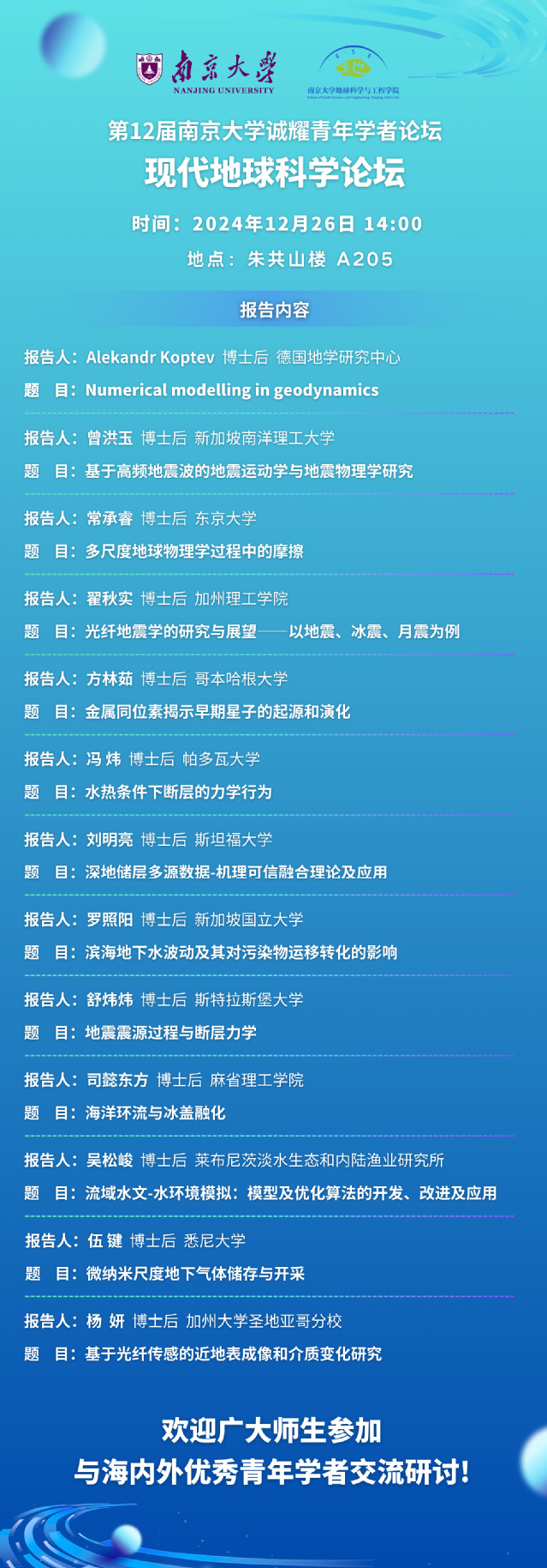 第12届304永利集团官网入口诚耀青年学者论坛 | 现代地球科学论坛