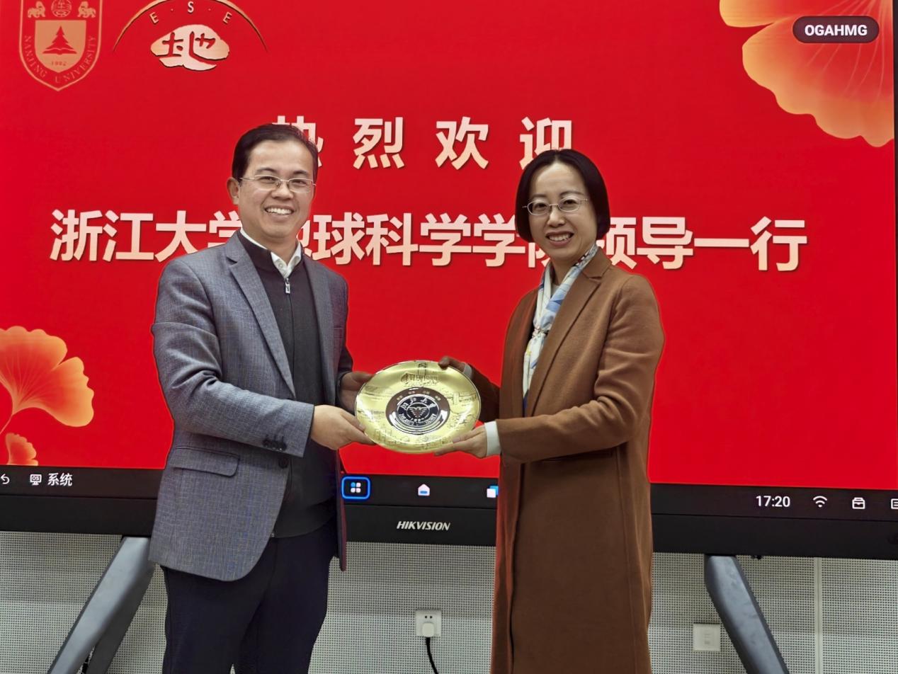 会议伊始,王博副院长对浙江大学地球科学学院一行的到来表示热烈欢迎,两校地球科学学科渊源深厚、特色鲜明,期待通过交流对话实现经验共享、优势互补,共同推动地球科学学科高质量发展。随后,董婷书记对南大地科院的发展历程、学科建设、人才队伍、科技创新、本科和研究生教育等进行了系统的介绍。浙江大学地球科学学院副院长杨蓉聚焦浙大地科院的历史沿革、学科特色、科研平台、人才培养、党建事业等成果进行了详细介绍。