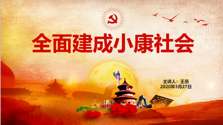 王岳首先为大家讲述了“全面建成小康社会”的提出的背景,从小康社会标准、指标、内涵、“四个全面”的龙头和高质量打赢脱贫攻坚战五方面介绍了全面建成小康社会的基本概念及党和政府做出的努力,并结合近期的疫情防控情况阐述了在全面建成小康社会过程中面临的困难和政府提出的中国方案,增强了支部同学对于打赢这场疫情防控阻击战的必胜信心和决胜全面建成小康社会的坚定信念。