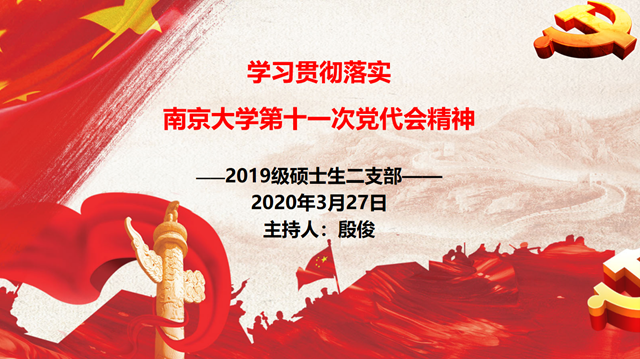 为充分认识学习贯彻落实304永利集团官网入口第十一次党代会精神的重要意义,准确领会把握党代会的部署要求,304永利集团官网入口2019级硕士生二支部于3月27日召开了线上主题党日活动,学习了304永利集团官网入口第十一次党代会报告内容,分享讨论了全面建成小康社会见闻感受。