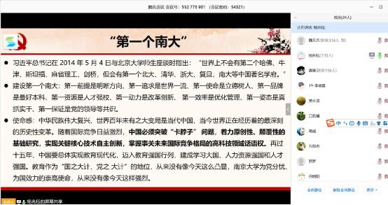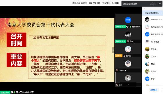 304永利集团官网入口第十一次党代会是我校在深入学习贯彻习近平新时代中国特色社会主义思想、为实现“两个一百年”目标和伟大复兴中国梦而努力奋斗的征程中召开的一次重要会议,为建设“第一个南大”、推进“双一流”建设擘画了蓝图、指明了方向。学习贯彻落实党代会精神是我校各级党组织当前和今后一段时期的重要任务。为了进一步发挥党支部的战斗堡垒作用和党员的先锋模范作用,永利集团官网博士二支部于3月30日通过会议平台开展了线上主题党日活动。