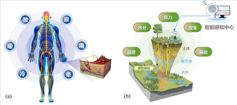 (a) 人体感知神经; (b) 岩土体感知神经