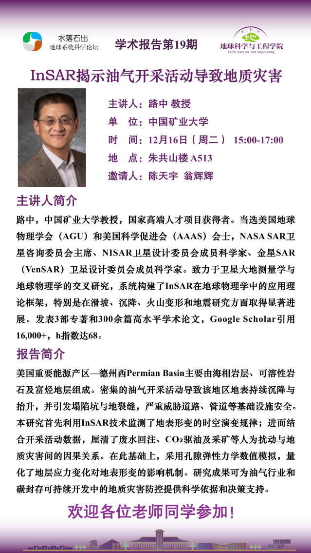 “水落石出”学术报告第十九期——InSAR揭示油气开采活动导致地质灾害