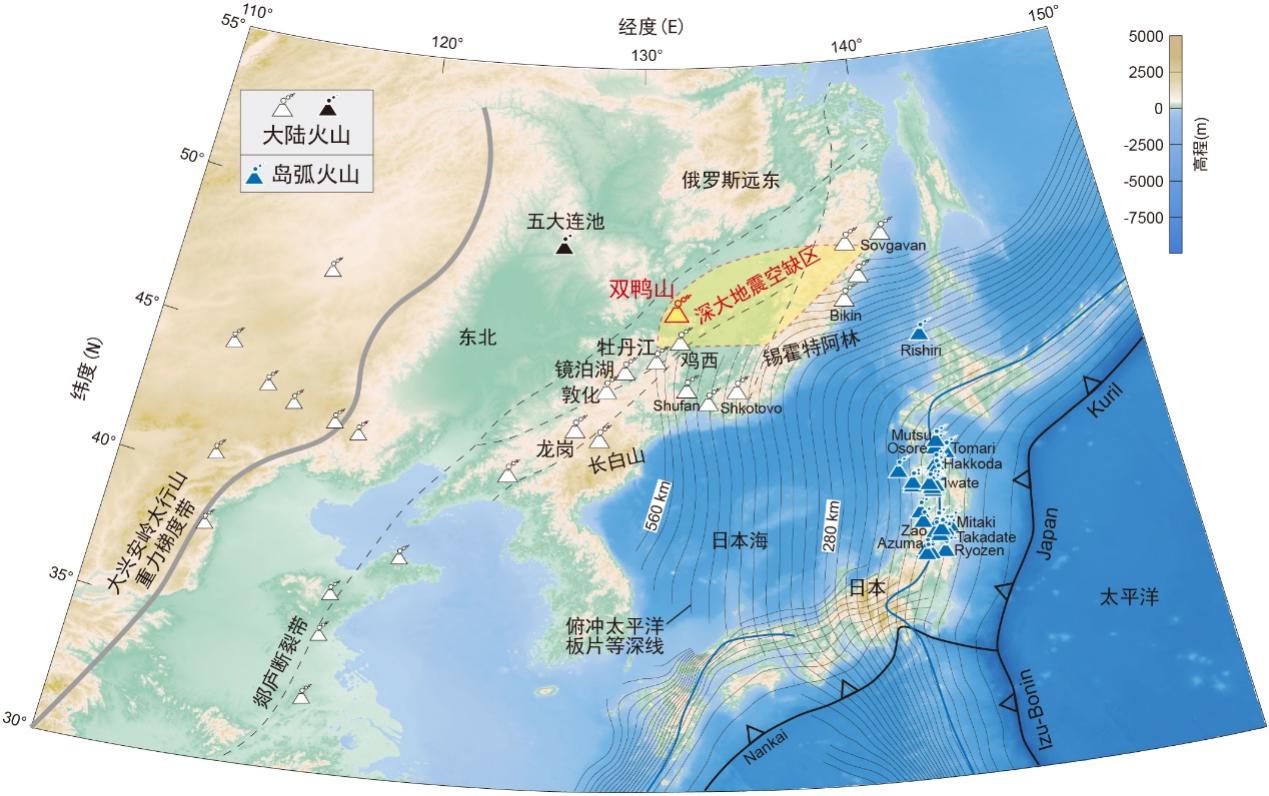 图1东亚新生代火山分布与俯冲太平洋板片的空间关系
