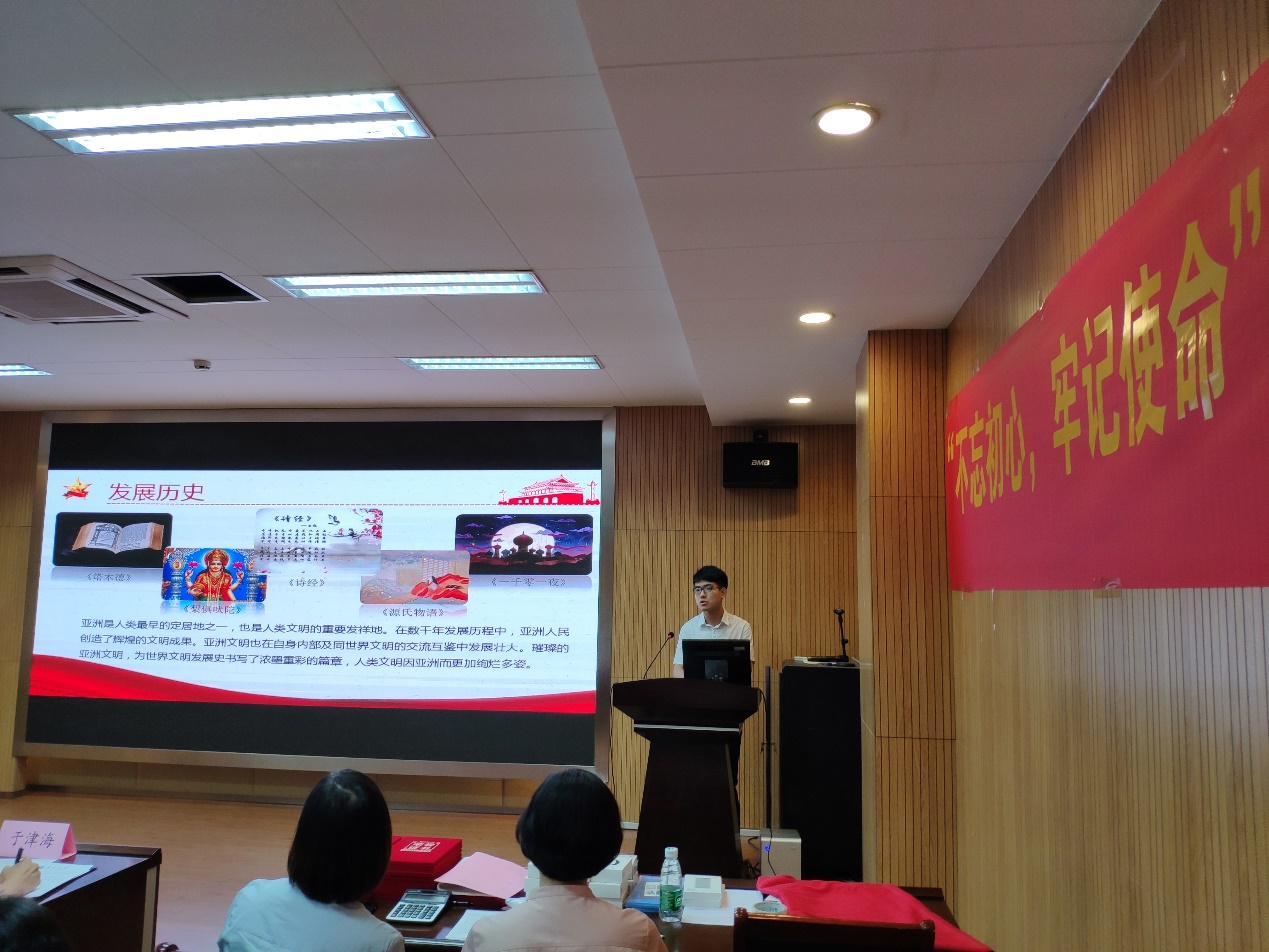 第十四位演讲者是来自本科生支部的张宽同学,他的微党课主题是“学习习总书记在亚洲文明对话大会开幕式上的主旨演讲”。他解读了习总书记的讲话稿《深化文明交流互鉴 共建亚洲命运共同体》。