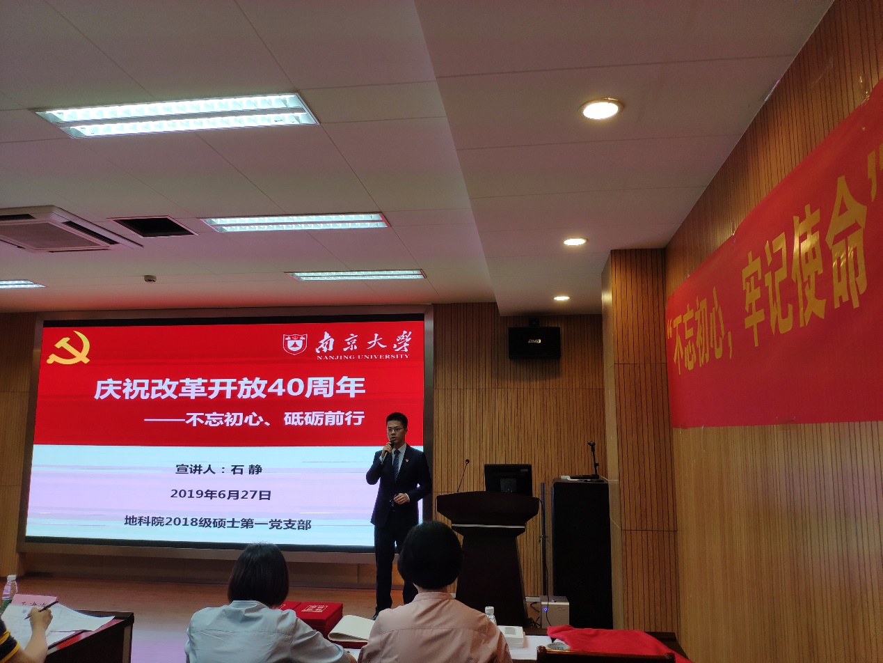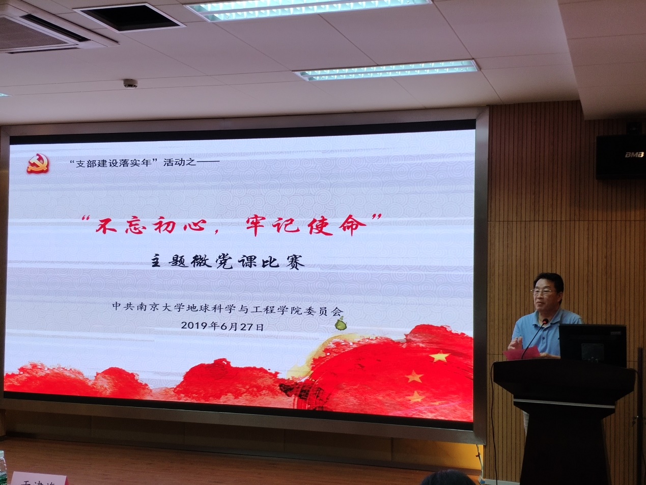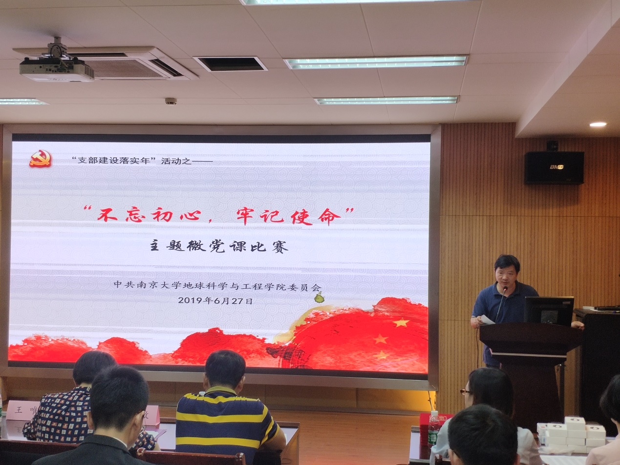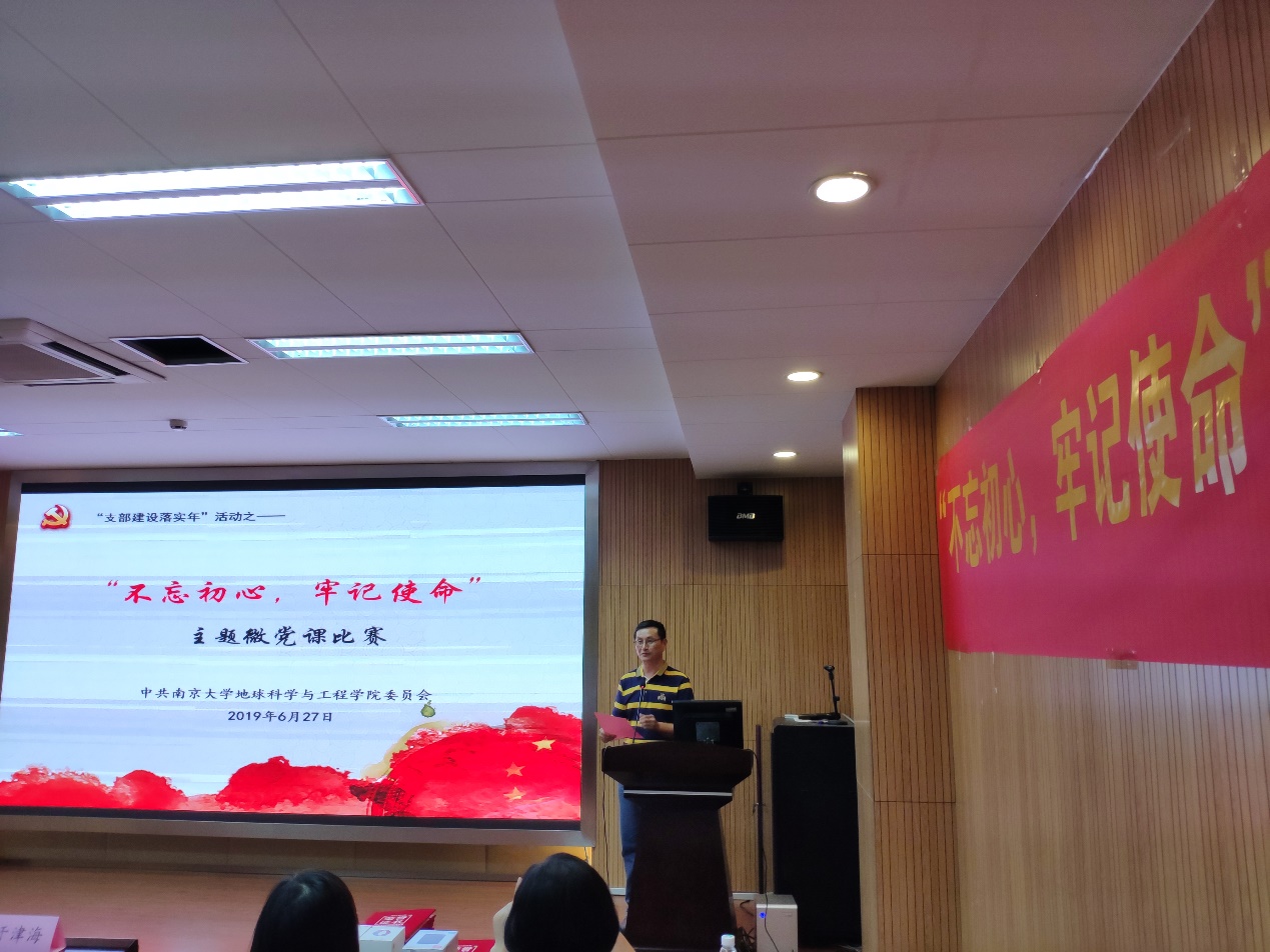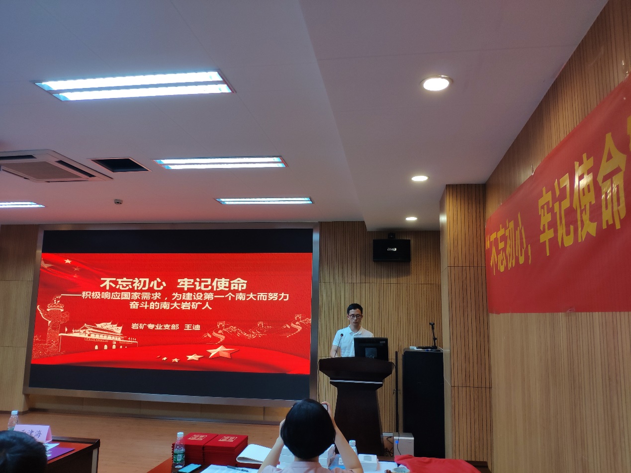 第十一位演讲者是来自岩矿专业支部的王迪老师,他的微党课主题是“不忘初心,牢记使命”。他结合自身并从本专业出发,讲述要成为一名积极响应国家需求,为建设第一个南大而努力奋斗的南大岩矿人。