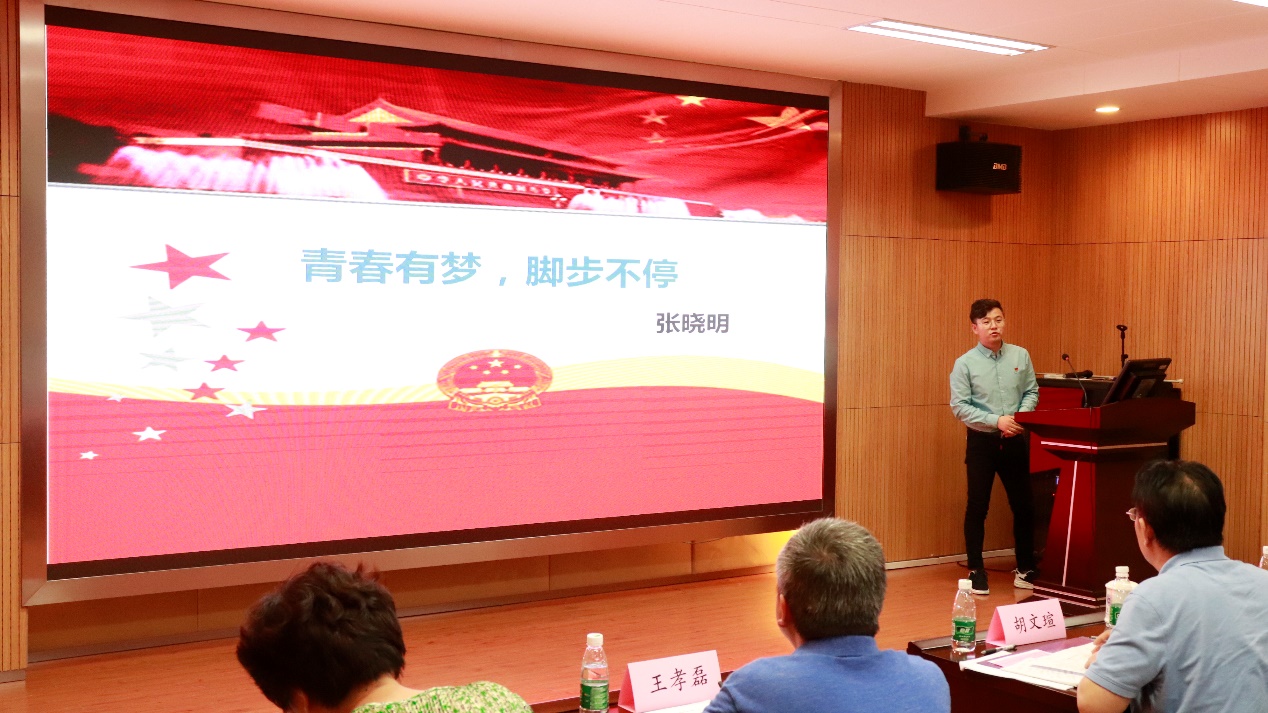 第十五位演讲者是来自2017级硕士生一支部的张晓明同学,他的微党课主题是“青春有梦,脚步不停”。他通过介绍自己的人生经历,让大家看到自由有梦、肯前行,成功也许不经意间就来到你身边。他告诉大家人永远不要活在过去的沮丧中,也永远不要活在未来的担忧中。