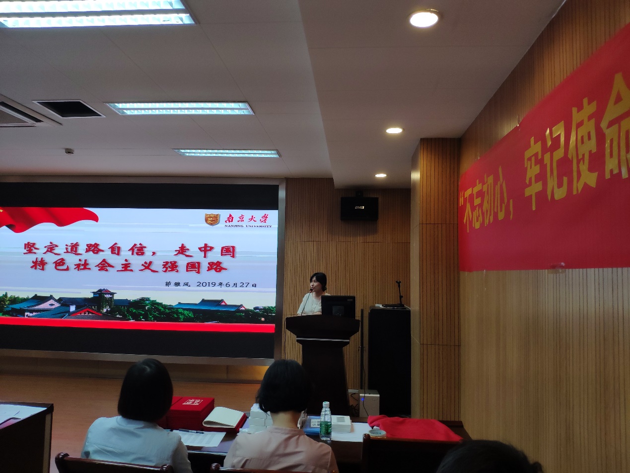 第八个演讲者是行政与国家重点实验室支部的茆雅凤老师,她的微党课主题是“道路自信”。她以道路自信为题,从建国以来党带领着中国人民取得的伟大业绩说起,结合几代领导人一直以来坚持贯彻的发展战略,阐明坚持走中国特色社会主义发展道路是新中国取得一系列伟大成就的根本保障,也是实现中华民族复兴的必由之路。