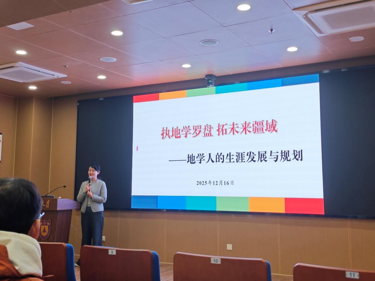 为引导学生科学认识自我、合理规划未来发展路径,进一步提升学院生涯教育工作质量与实效,2025年12月16日晚,304永利集团官网入口在朱共山楼AD26报告厅举办生涯教育专题讲座。讲座以“执地学罗盘,拓未来疆域——地学人的生涯发展与规划”为主题,特邀304永利集团官网入口机关党委常务副书记、生涯教育研究中心主任刘慧担任主讲。学院党委副书记姚静,团委书记陈昕,与来自本硕博各年级学生共同参加此次活动。讲座由学院党委副书记姚静主持。