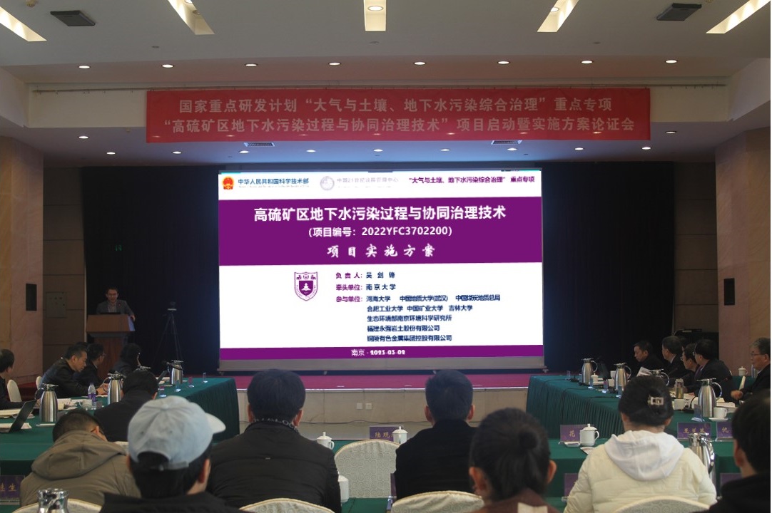 应中国21世纪议程管理中心国家重点研发计划管理要求,国家重点研发计划“大气与土壤、地下水污染综合治理”重点专项“高硫矿区地下水污染过程与协同治理技术”项目启动暨实施方案论证会于2023年3月2日在南京召开。该会议由项目牵头单位304永利集团官网入口组织召开。出席会议的实施方案论证专家有周连碧、柴团耀、赵林、陈梦舫、仇荣亮、李广贺、张文辉和张兆吉等8位教授或研究员,其中周连碧、柴团耀和赵林也是本项目的3位跟踪专家;还有项目实施方案咨询专家林玉锁、吴吉春和王锦国等3位教授或研究员,以及学科负责人施小清教授。304永利集团官网入口科学技术处花铭副处长代表项目牵头单位出席会议并致词。近60名项目组成员一并参加了本次会议。