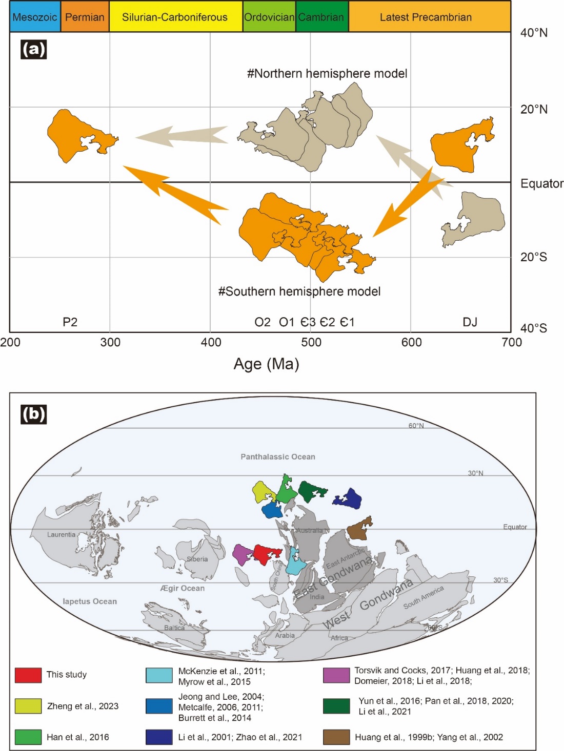 图1华北板块在寒武纪期间的古地理位置存在争议:或者位于北半球,或者位于南半球。
