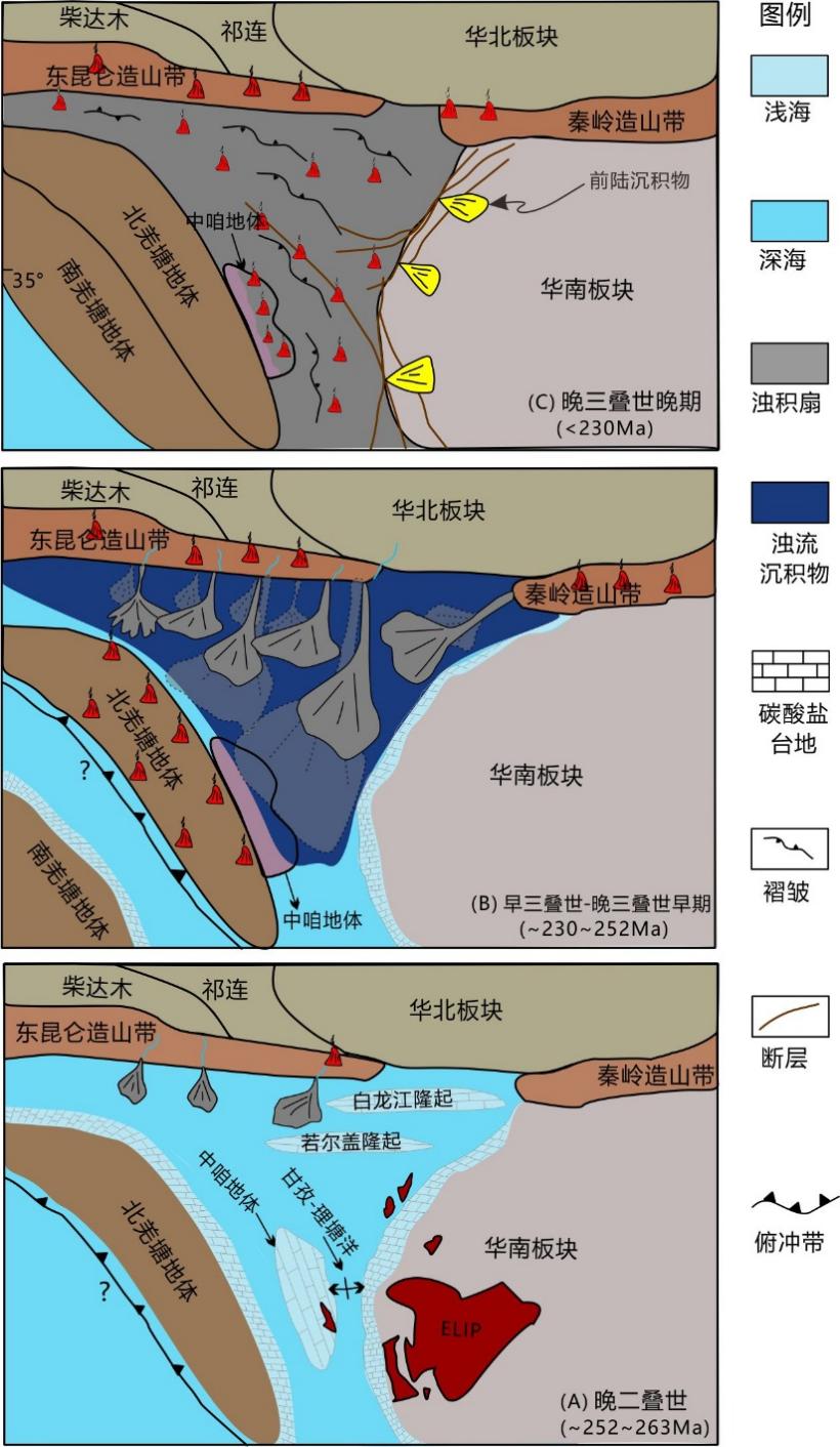 该研究系统论证了中咱与松潘-甘孜地体在晚三叠世共同构成一个受碰撞造山作用改造的统一大陆地块(图5)。传统所称的“义敦岛弧”应被重新定义为 “同碰撞岩浆带”。