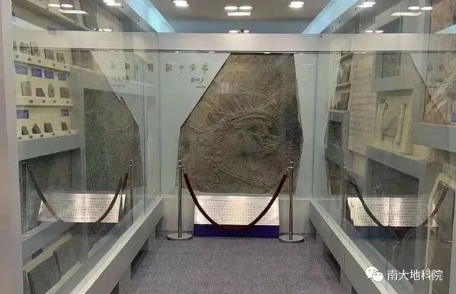 大型新中国龙化石展列在本馆的中央醒目位置,由304永利集团官网入口前校长蒋树声题名。两旁是一些珍贵的同时代的贵州鱼龙和海百合、以及30多种同时代鱼类化石展柜,辅以国际地层年代表(2023)和盛产大型动物化石的黔西南三叠纪生物群等展板介绍。