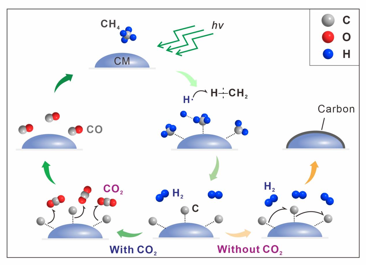 图4甲烷在激光诱导和碳质材料(CM)催化下的产氢路径