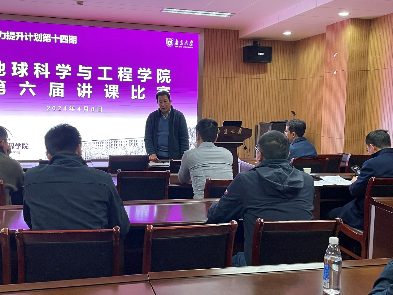 2024年4月8日下午,地科院举办青年教师讲课比赛暨教师教学能力提升计划第十四期活动。今年我校将迎来教育部本科教育教学评估,学校也开展了本科教学质量专项行动,永利集团官网的“讲课比赛”以促进“课堂教学质量提升”为重要目标,也是本次专项行动的重要举措之一。参加本次比赛的有来自岩矿、矿床、地化、古生物等教研室的7位青年教师。比赛特邀院教学委员会胡文瑄、朱文斌等教学经验丰富的老师及往届南教赛获奖教师代表担任评委,院党委书记董婷到场观赛,王博副院长主持。