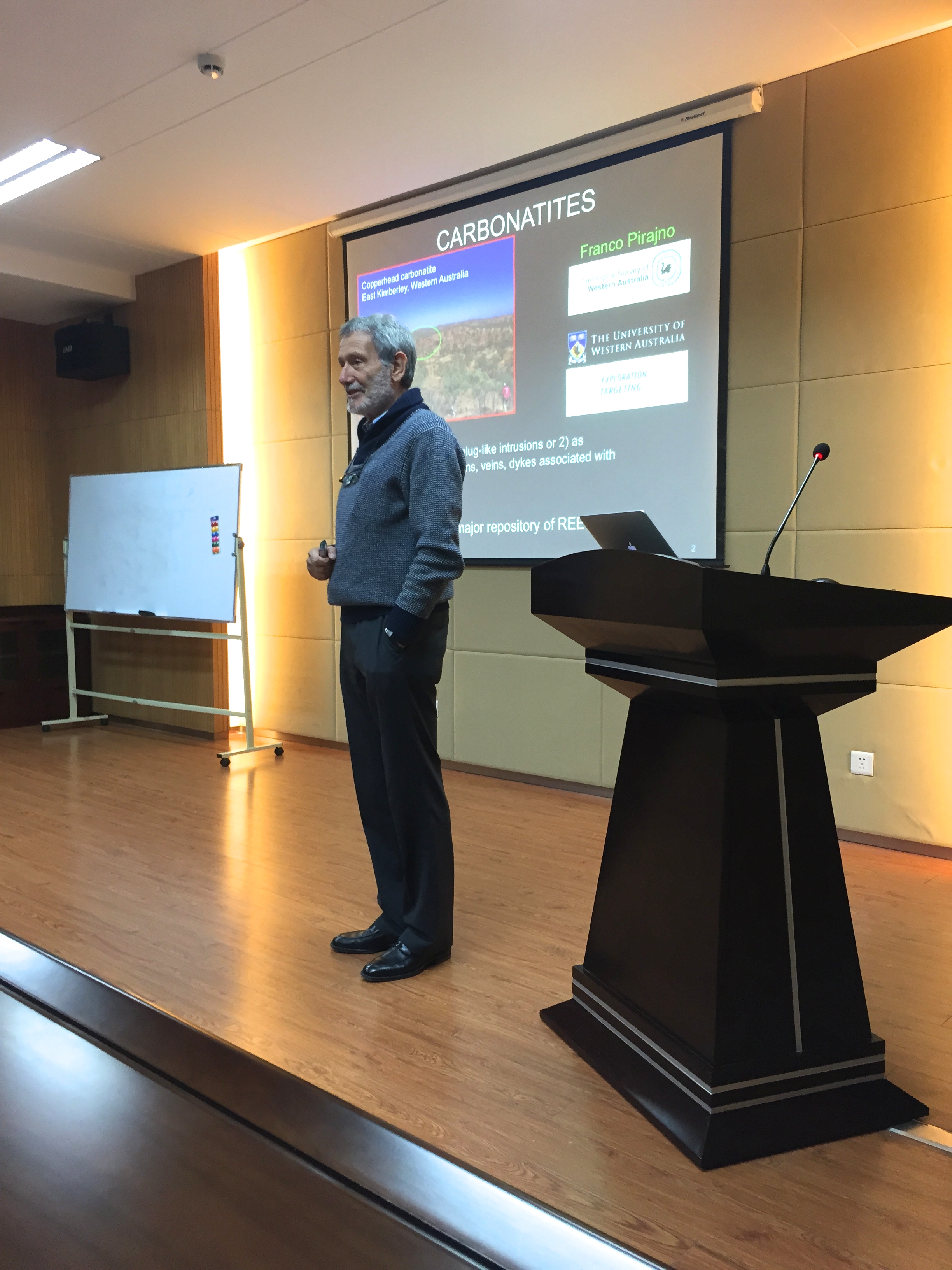 2015年1月16日上午,西澳大利亚地质调查局首席地质师,西澳大学教授Franco Pirajno应内生金属矿床成矿机制研究国家重点实验室邀请来我校访问,并做了题为《Carbonatites: A major repository of REE minerals》的学术报告。报告在304永利集团官网入口仙林校区朱共山楼举行,永利集团官网院长王汝成教授主持并介绍了Pirajno教授的简历和主要学术成就。