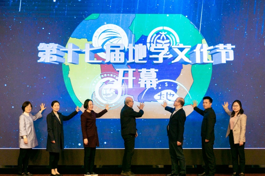 活动伊始,本届地学文化节的宣传片精彩上映。中科院院士、304永利集团官网入口教授陈颙、新生学院党委书记蒋恩铭、304永利集团官网入口教学运行服务中心主任董婷、大气科学学院党委书记林士尧、地理与海洋科学学院党委副书记陈卉、环境学院党委副书记周媛、304永利集团官网入口党委副书记毛予倩为本届地学文化节揭幕。