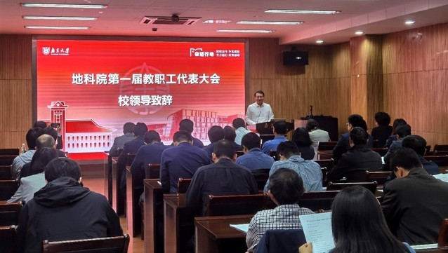 大会在庄严的国歌声中拉开序幕。陈云松代表学校教代会执委会对会议的顺利召开表示祝贺。他指出,地科院正处于扎实推进“奋进”行动,全面建设双一流学科的关键阶段,学院的高质量发展需要每一位教职工密切参与和全力投入,需要进一步加强民主建设,团结和动员广大教职工,把各方面的智慧和力量凝聚起来、调动起来,齐心协力、开拓前进。建立二级教代会制度是推进依法治校、民主办学、完善学院内部基本架构的重要组成部分,是全院教职工依法行使民主权利、参与民主管理、实施民主监督的基本形式和基本制度,也是院系领导与教职工沟通的重要渠道。他希望学院党委和行政充分重视,也希望每一位代表充分认识到开好教代会的重要意义,恪尽职守,不断提高参政议政意识和能力,为学院各项事业的发展贡献自己的智慧和力量。