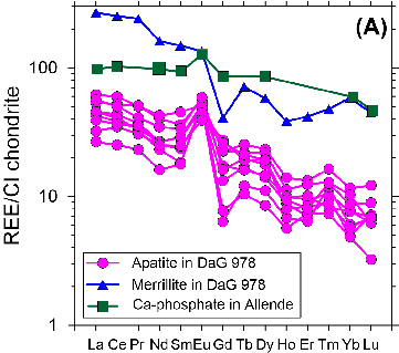 图1. DaG 978陨石中独特产状的磷灰石颗粒