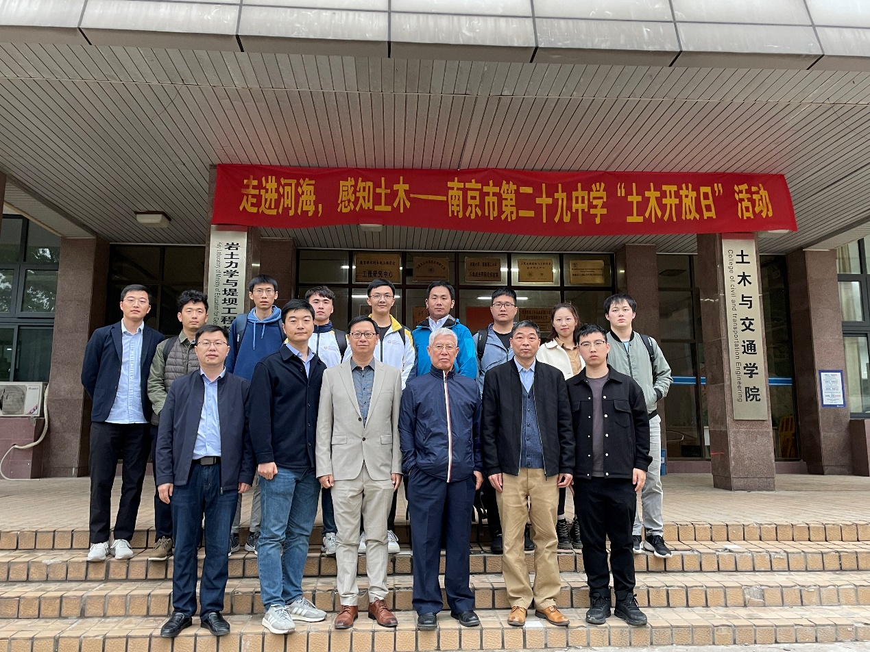 随后,香港访问团在朱鸿鹄教授的带领下,前往南京工业大学交通运输学院和河海大学土木与交通学院进行了学术交流,参观了相关实验室。殷建华教授在河海大学做了题为“Nonlinear Rheological Models of Clayey Soils and Applications(黏性土的非线性流变模型及应用)”的报告,引起了广大师生的浓厚兴趣。